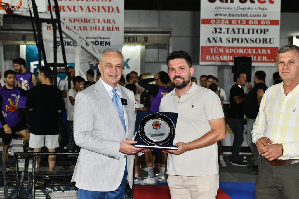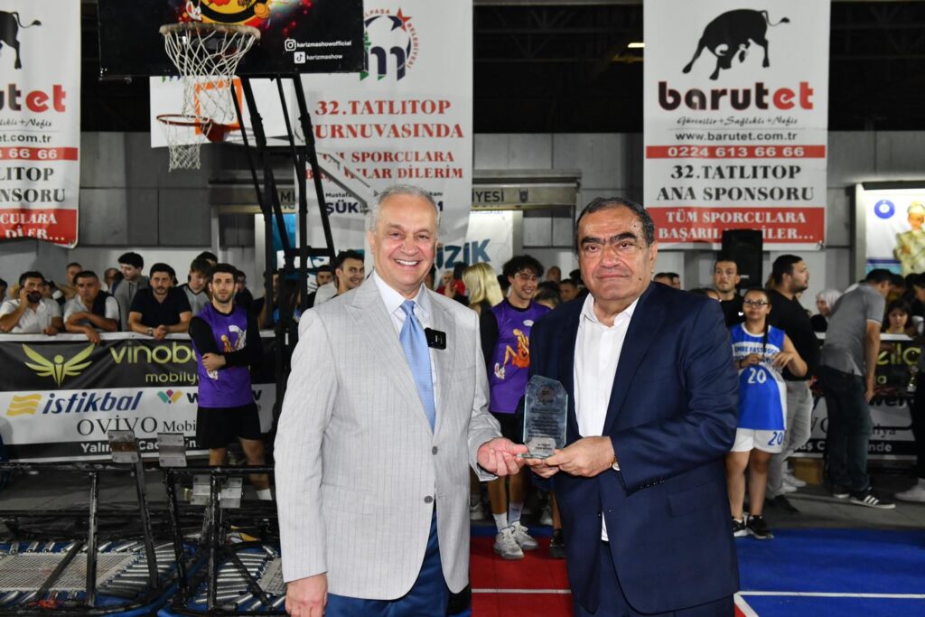 Geceye onur konuğu olarak davet edilen, TATLITOP’un kurucuları arasında bulunan 1999-2009 Dönemi Mustafakemalpaşa Belediye Başkanı Hayri Öztetikler’e ‘32. Yıl’ anısına forma hediye edildi.
