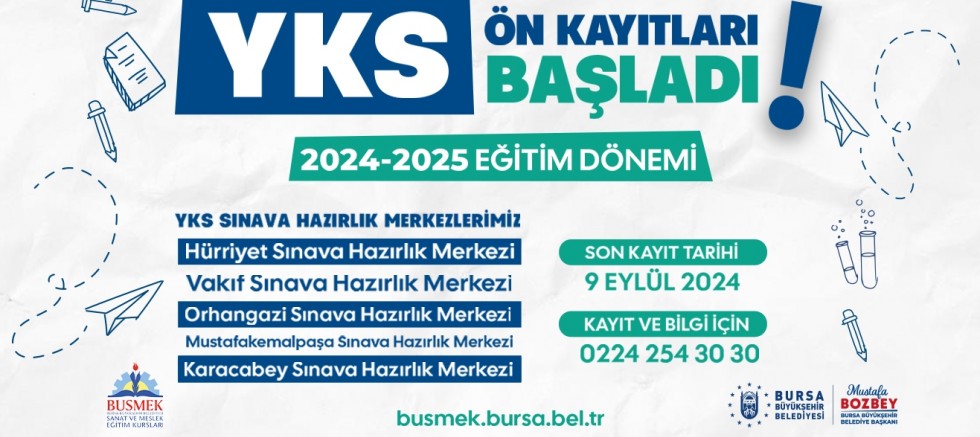 BUSMEK Sınava Hazırlık Merkezleri’ndeki dersler Pazartesi, Salı, Çarşamba, Perşembe günleri 09.00-16.00 saatleri arasında veriliyor. Ayrıca, 2 haftalık periyotlarla Cuma günleri yapılan deneme sınavlarıyla öğrencilere zaman ve kaygı yönetimi öğretilirken aynı zamanda kazanımları da ölçülüyor.BUSMEK’in ücretsiz YKS hazırlık kurslarından yararlanmak isteyen gençler, ‘busmek.bursa.bel.tr’ internet adresinden başvuru yapabilecek.